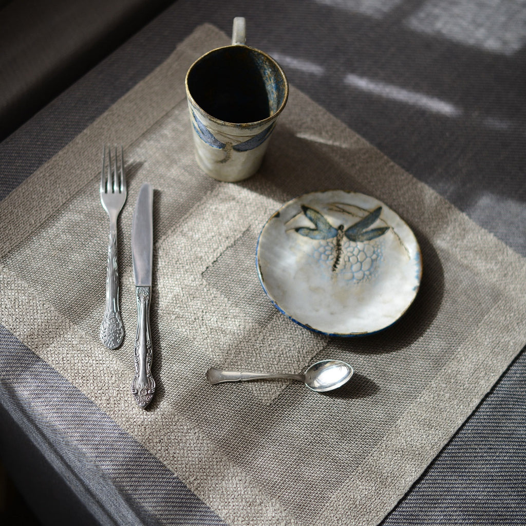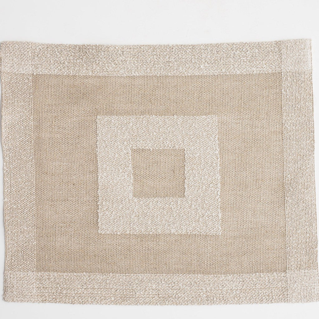 The placemat is individual handwork with its unique character. It is woven on a traditional wooden loom by skilled latvian hands. Boucle yarns are integrated as delightful accents along the edges of the placemat and within the product. Its simplicity and the woven pattern add a special feeling to the room.