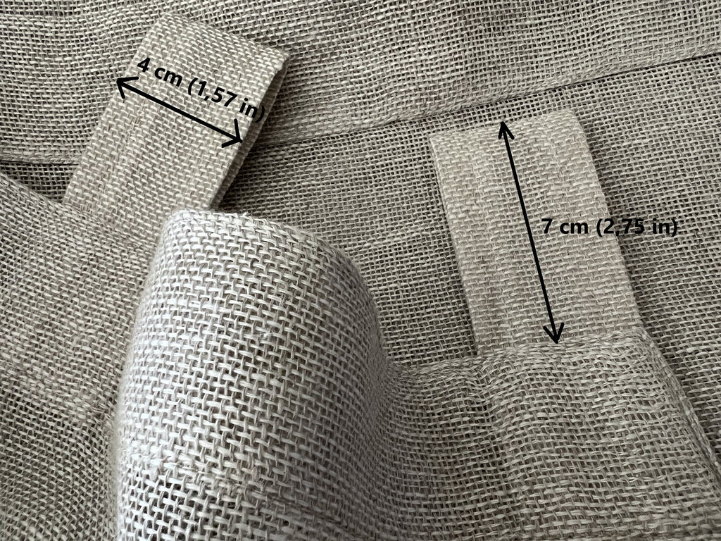 Length: Custom, measured including tabs which are 7 cm (2.75 in) long. The total length of 250 cm is the length of the base of the curtain 243 cm + tabs 7cm. The length (243 cm + 7 cm tabs) is for standard purchase on the internet, but you can order the length suitable for you.