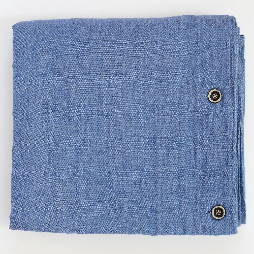 Luxury Soft Blue 100% Linen Duvet Cover with Buttons