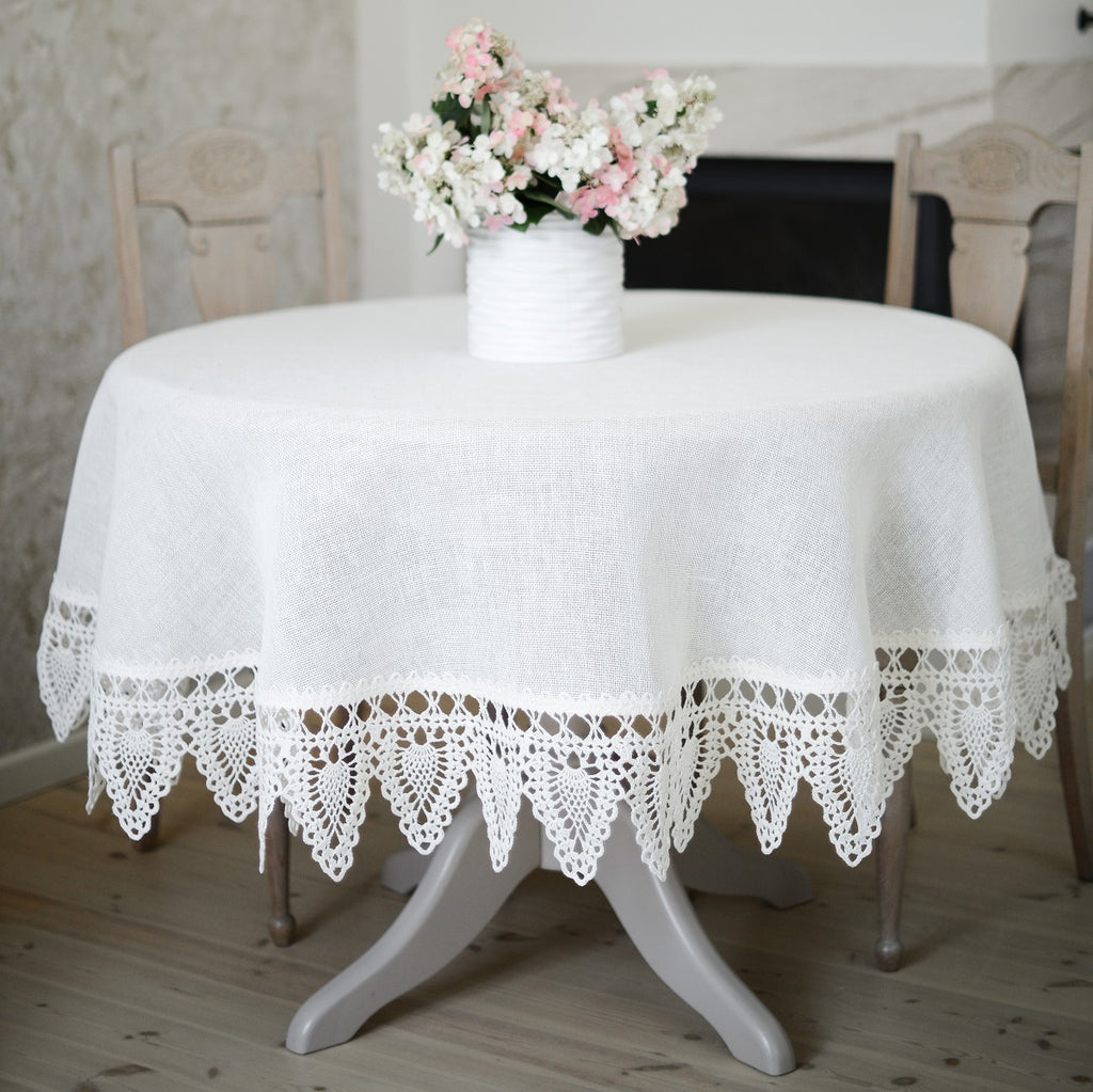 Round Tablecloth with Crocheted Lace
