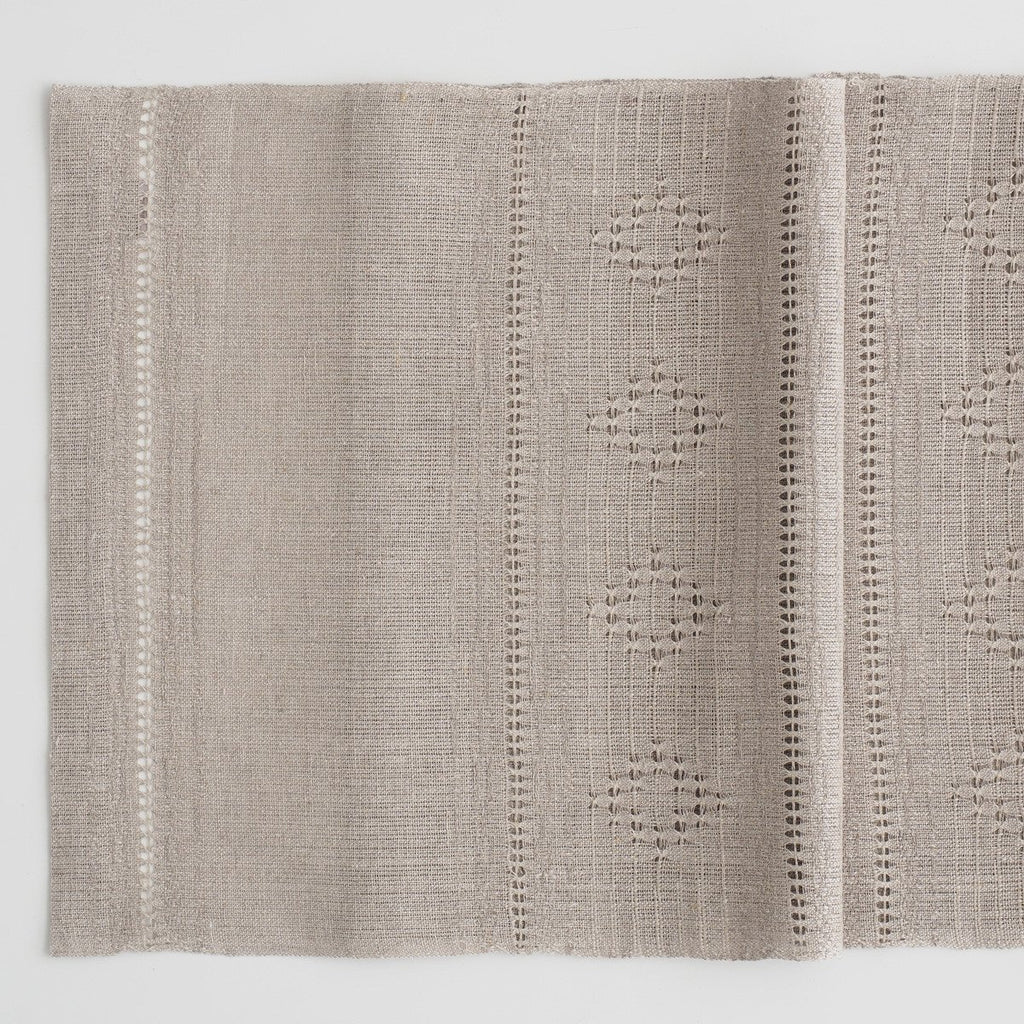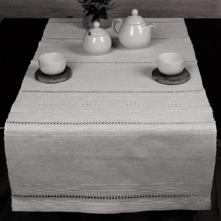 The table runner is individual handwork with its unique character. It is woven on a traditional wooden loom by skilled latvian hands. Its simplicity and the woven pattern add a special feeling to the room.