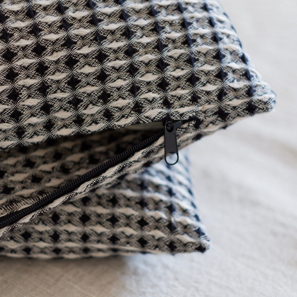 Linen Throw Natural linen/black waffle
